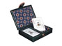Estuche forrado en simil cuero, Broche tipo iman. Incluye juego de naipes ingles y domino.